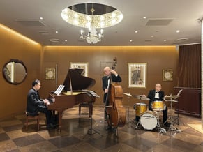 披露宴 · 2024/12/08 披露宴:ジャズトリオ 12月7日は、都内レストランウェディング(ご披露宴)にてJAZZ演奏をいれさせていただきました。 お客様からのリクエストもいただき、とても喜んでいただけたようです。 なにより、会場スタッフさんからの「素敵~」「いいね~」と言っていただけ、嬉しいかぎりです♪ 《演奏》 ピアノ:中村力哉 ベース:西川輝正 ドラムス:金子正則 tagPlaceholderカテゴリ: 演奏家派遣, 生演奏, 披露宴での演奏