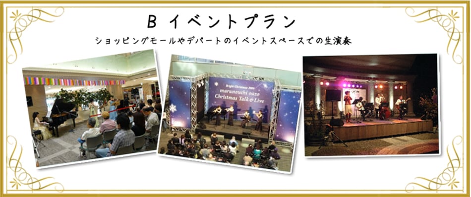 様々な会場での演奏が可能です。 集客にも役立つイベントプランは、デパート、ショッピングモール、